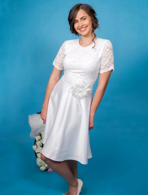 Decorate this confirmation dress with a beautiful flower on the waist and this short sleeve dress turns into something amazing, Colette Confirmation Dress.